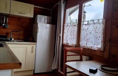 The interiors of the chalet are bright and spacious, creating a warm atmosphere. The open kitchen is equipped with all necessary appliances for meal preparation and comes with a cozy dining area to enjoy your meals, while the living room provides entertainment with a TV and access to the terrace. Perfect for quality time together.