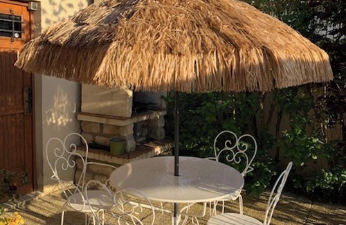 This villa features a welcoming outdoor area where you can enjoy lively moments under the sun. The private pool, available from mid-May to the end of September, invites swimming and sunbathing on the loungers. A barbecue is also available for delicious grilling sessions with family or friends, all in a green and soothing environment.