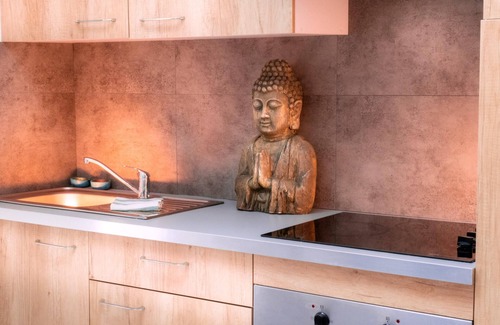 The kitchen is well-equipped for cooking up your favorite meals. Enjoy your feast around the dining table which seats 4 or outside, in the garden.