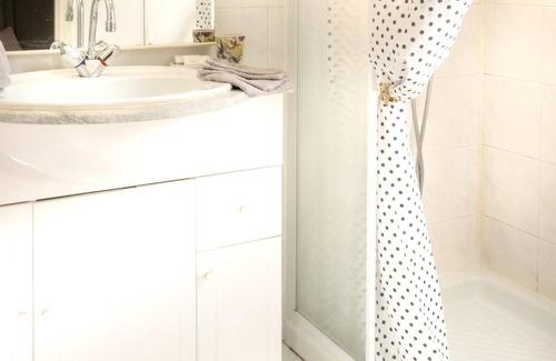 The house has a comfortable bedroom with a double bed. The bathroom is fitted with a shower and a toilet.