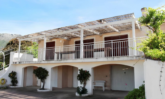Experience a delightful vacation in this spacious 223 m² house, perfect for larger groups. Enjoy mesmerizing sea and mountain views from the terrace, and indulge in the comfort of the well-appointed rooms.