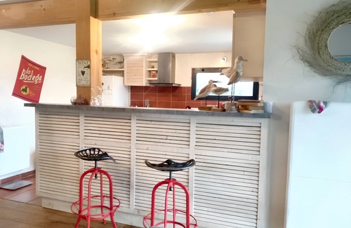 The fenced garden of this house invites you to enjoy cheerful moments around the barbecue or on the terrace, while taking in the view of the garden. The loungers are perfect for peaceful afternoons in the sun. Access is through a private entrance, ensuring your tranquility. Parking space is also available on-site.