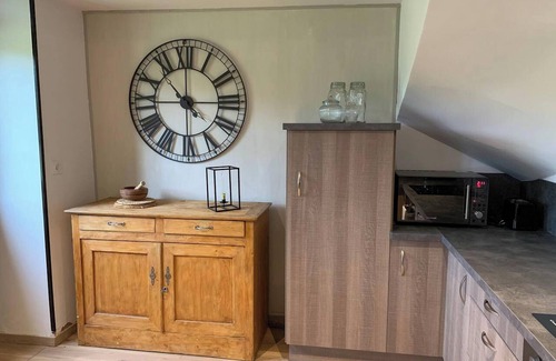 The house is conveniently located near main roads, allowing easy access by car. You are also just 20 minutes from the nearest train station and one hour from the airports in Caen and Le Mans. Parking is included on site.
