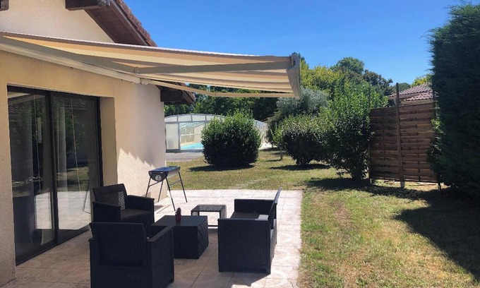 - Holiday house MIMIZAN, Very warm wooden terrace, private swimming pool.