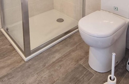 The apartment has a comfortable bedroom with a double bed. The bathroom is fitted with a shower and a toilet.