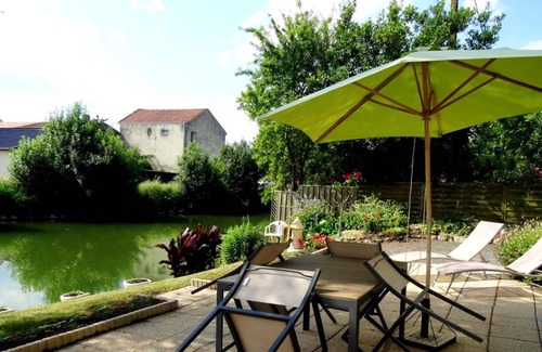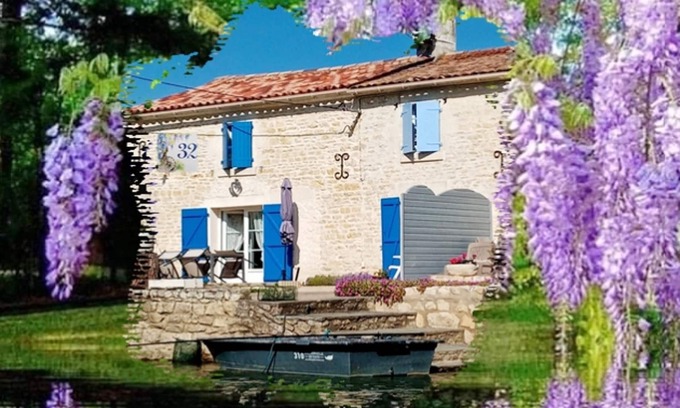 - MARAIS POITEVIN bord rivière pêche ,barque, vélos, wifi, linge, cheminée, cuisine, terrain de boules