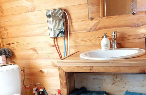 The chalet has a comfortable bedroom with a double bed. The bathroom is fitted with a shower and a toilet.