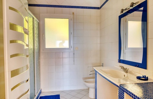 The house features air conditionning, central heating, ironing equipment, a vacuum cleaner, cleaning products and a washing machine.