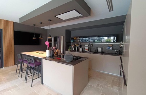Outside, you will find an inviting private pool, open all year round. Enjoy the garden views from your terrace, equipped with comfortable outdoor furniture and a barbecue for cozy evening moments. The well-maintained garden offers opportunities for relaxation and play. With a boules court for fun competitions and two sun loungers, this is the place to soak up the good weather. The private entrance to the property provides a sense of intimacy.