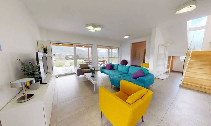 Welcome to this spacious holiday home, ideal for groups or families. Enjoy a majestic view of the mountains and a well-maintained garden perfect for relaxation. A charming decor creates a homely atmosphere.
