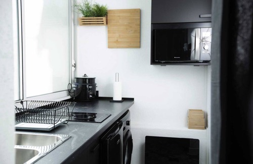 This studio apartment features a personal entrance, allowing you to step into your own private space. There are good parking options around the building, making it easy to explore the area by car. You will appreciate the peaceful atmosphere of the neighborhood, where you can relax between your adventures.