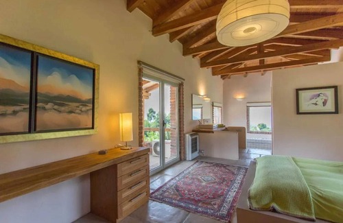 The villa has 4 comfortable bedrooms, 1 including a double bed and a private bathroom with a shower, 1 including a double bed and a private bathroom with a bath tub and toilet, 1 including a double bed and a private bathroom with a shower and toilet and 1 including a single bed and a double bed and private toilet. The bathroom is fitted with a shower and a toilet.