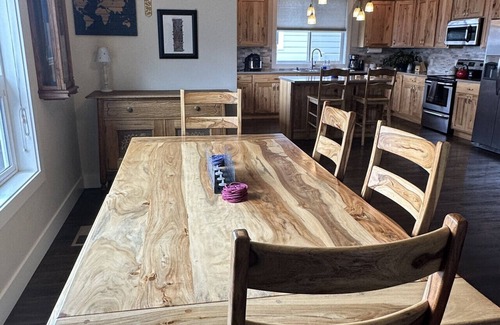 The house is only 10 minutes from MSO airport, about $18.00 Uber trip. A 8 place Ford Expedition with a new Graco 3 in 1 child seat and a baby seat are available. Coolers and bear spray also available. Message me for more details. A new high quality king bed in master suite, comfy queen memory foam in other bedrooms with lots of extra pillows. Fluffy towels, super clean hard surface floors and shaded quiet outside sitting area. Massive dining room table and island for meals or games. An ADA ramp available for wheelchair access to front entrance available upon request.