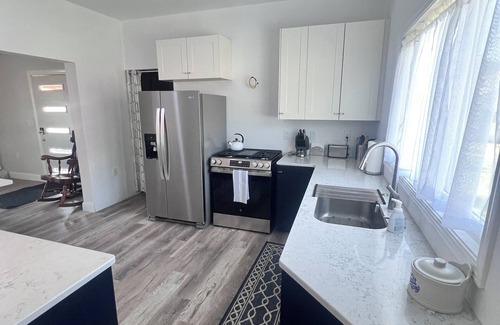 Stay comfortably in Gothenburg at this 5-bedroom house. With 1 king bed, 3 queen beds, and 1 bunk bed, this enchanting property is perfect for families or groups of friends. Enjoy the cozy atmosphere and modern amenities like heating and AC. There is a laundry machine available. The kitchen has a coffee machine, pots and pans, dishes, flatware and glasses. There is also a dish washer and a toaster. There is plenty of parking in the back alley and on the street. Book now and enjoy everything this house has to offer.