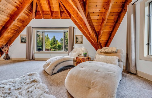 Nestled in the forest near Homewood, this creekfront Tahoe retreat is perfect for families and outdoor lovers. With a kids’ playroom, EV charger, and direct trailhead access just a block away, adventure starts at your doorstep. Relax by the fire pit or stream a movie in one of the home’s multiple living areas.