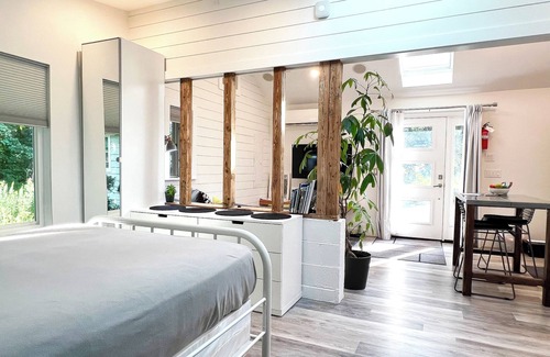 Recently renovated, clean and comfortable with many amenities. Honey B has a lofty feel with the footprint of a small house. High ceilings and several skylights allow for light and privacy in the quiet neighborhood of Sherwood Farms. Located on the southwest side of Charlottesville, just 7 minutes to Scott Stadium, UVA campus, and restaurants, 10 minutes minus plus to historic downtown mall, Thomas Jefferson’s Monticello and central to many major wineries and breweries.
