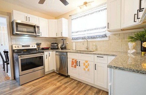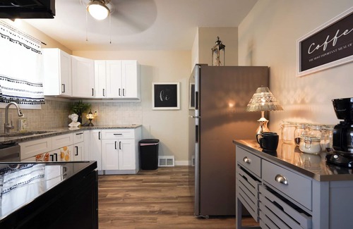 Relax in this beautifully decorated 3-bedroom ranch inspired by the charm of honeybees – with elegant black, white, and gold touches. Nestled on a spacious half-acre lot, this peaceful retreat sleeps 6-8 guests. Our home uses fresh Well water.