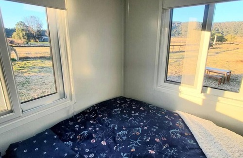 Welcome to our brand new two-bedroom 36m2 tiny house on wheels. This cozy retreat accommodates up to 4 guests and is situated on the picturesque grounds of Honey Wines Australia Meadery and overlooks a neighbouring vineyard with a mountain range backdrop.