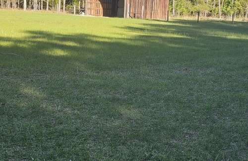 Tucked away in the woods..nature at its finest..small tiny house .. beautiful cabin..claw foot tub ..upstairs loft..outdoor shower if preferred hot and cold water. Cable TV ...2 burner cook top ..full size fridge. Coffee pot..micro wave...deer and turkey wander 40 acres of pine trees and natural woods...2 adults no children or pets perfect for honeymoon getaway ..window air conditioner