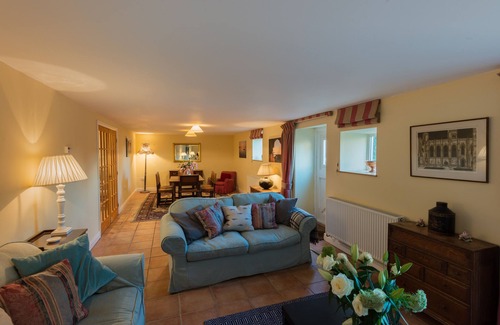 Honeysuckle Cottage has three bedrooms upstairs – the exceptionally spacious master bedroom has a superking bed that can be divided to make twins and an en suite bathroom; the second bedroom has a king bed that can also be divided to make twins and an en suite shower room; the third bedroom has a king bed and an en suite shower room. These rooms are all light and airy with glowing wooden floors. Downstairs there is a fourth extra bedroom with a double bed and en suite shower – this bedroom uses the toilet in the utility room next door and can be rented at an extra cost of £80 per night . All bedrooms are provided with plenty of large, fluffy towels, soaps and hair-dryer.