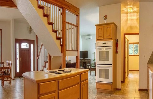 A spacious living-room, bath and bedrooms are easily maneuvered. Wheelchair accessible shower on the main floor. The second floor offers the master bedroom with a king-sized bed, a large master bathroom including a 2-person soaking tub, and separate walk-in shower. Two bedrooms with a king size bed and one bedroom with a set of twins. The second bathroom on that floor has a walk-in shower as well. There is also a recreational room on the second floor and WiFi throughout the house and property.