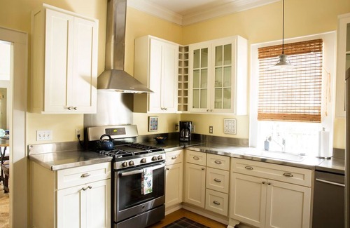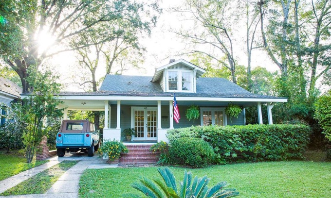 NEW LISTING- At Hoodwood it is all good in this neighborhood, as you will quickly see. This charming 1920 cottage has been restored along with the its neighboring cottages making it a close knit community. Often neighbors gather on each others porches or walk downtown for coffee, dinner, or shopping. Our popular Downtown is only three blocks away. This cottage is tastefully decorated by Nan Myers, who is the owner of Firefly, which has been lighting up Downtown Thomasville, GA. for over twenty years. Hoodwood is a little tongue in cheek as the decor gives a subtle nod to Robin Hood and to Mr. Rogers all at the same time. The point being that we want you to feel apart of our neighborhood and apart of Thomasville, GA. during your stay. Inside we have created a cottage that is cozy, comfortable and good-looking. Each bedroom has high end sheets, blankets, and comforters encouraging a restful night. We have two queens and a pair of twins. Kitchen is fully stocked including our favorite coffee from Crested Butte, Colorado. We encourage you to pick up cheeses from Sweetgrass Dairy, yummy casseroles from Relish ( we love the Wild game), bagels and smears from Empire Bagel.
