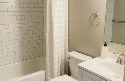 You will have access to the entire lower half of the duplex. Walk into the cozy living room and relax on the comty furniture. Cook your favorite meal in the fully equipped kitchen, then have a family dinner in the dining room.