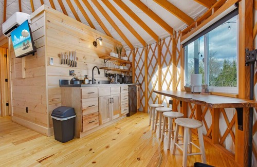 Welcome to Horizon Hideout, where breathtaking mountain views meet modern comfort in the heart of the Pennsylvania Wilds! This cozy yurt offers everything you could desire for your next outdoor adventure, including a climate-controlled interior with a fully stocked kitchen, reliable Wi-Fi, a Smart TV, and even a unique bubble dome skylight for stargazing. Don't forget the private hot tub with panoramic views that stretch for miles! Horizon Hideout is truly a nature-lover's dream.