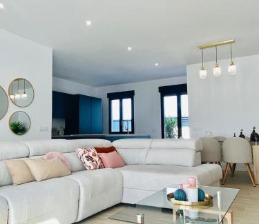 Horizon Sierra&Mar Los Gallardos offers accommodations in Los Gallardos, 7.9 miles from Marina Golf Club and 8.5 miles from Mojacar Marina Golf. The property is around 9.2 miles from Valle del Este Golf Course, 10 miles from Desert Springs Golf Club, and 23 miles from Almeria Circuit. There's a year-round outdoor pool and guests have access to free Wifi, free private parking, and an electric vehicle charging station. With direct access to a patio with pool views, the air-conditioned villa consists of 3 bedrooms. Offering a terrace with mountain views, this villa also has a cable flat-screen TV, a well-equipped kitchen with a dishwasher, an oven, and a microwave, as well as 3 bathrooms with a shower and a hair dryer. For added privacy, the accommodation has a private entrance and soundproofing. Almeria Airport is 40 miles away.