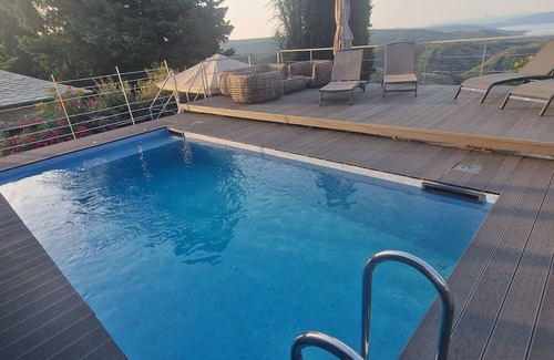 At the lower level next to the main construction of the outdoor pool there is a 5 persons zaccuzi ..with astonishing view!!
