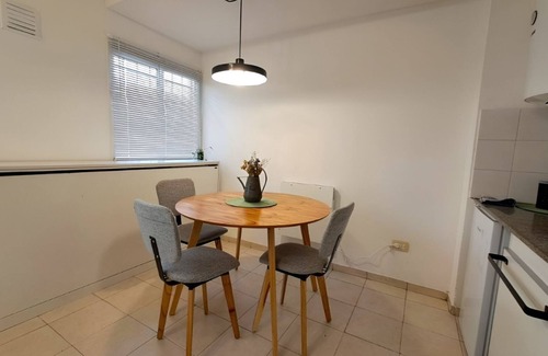 Our apartment at Santa Fe 1700 is super practical for people visiting the city for errands, courses, or wanting to explore the main tourist attractions, as it is located right in the city center, close to most administrative, educational, gastronomic, and tourist sites of interest. We prioritize the practicality and simplicity of the space, so you will find everything essential for a comfortable and worry-free stay. Ground floor duplex apartment with access to an outdoor hallway; Equipment: Gas stove, electric kettle, toaster, refrigerator, microwave, smart TV with Android TV (no cable), WIFI, air conditioning (heating/cooling), basic dishes and kitchen utensils, table, chairs, and double bed (option for 2 separate beds); Provided with sheets, blankets, one set of towels per person; toilet paper, kitchen paper, detergent, shampoo, conditioner, and liquid hand soap. We can accommodate up to 3 people, as it has 1 single bed on the ground floor.