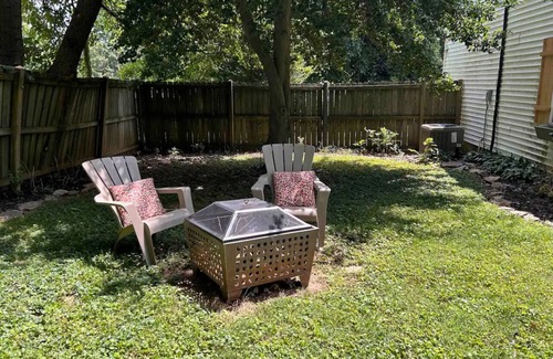 Located in the heart of Shelbyville, this adorable little hideaway is within walking distance from the Shelbyville Fairgrounds. A mere 5 minute drive to the Main St. boutiques, cafés and restaurants, this location features a fire area, and a propane grill. In addition to the cozy patio area, this Hideaway also offers a comfortable workspace and a Roku TV. The Hideaway is equipped with a full size kitchen and appliances, basic seasonings and oil, coffee pot, French press, Keurig, washer/dryer