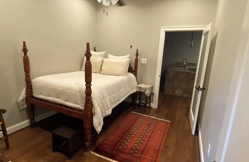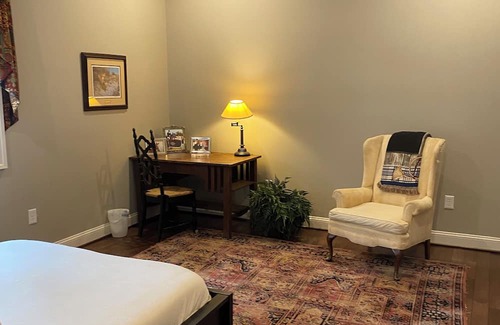High end , 2 bedroom flat . Professional interior decor , very clean. Quiet horse farm setting . Privacy and close to Henrico County . Two bedrooms , both with Queen beds. Ceiling Fans , Central heat and Air , whole house filtered water .