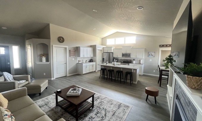 Open and roomy, vaulted ceilings, well appointed home, cooking island, back yard dining amongst the Horse Heaven Hills, nestled in a quiet residential tract, cul de sac, lots of parking, 3 car garage, 50 amp plug in for EV charger, in Garage. RV parking gated, water and power only. Several wineries within minutes and and a few breweries too. Great get away for couples and friends.
