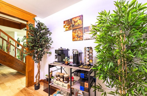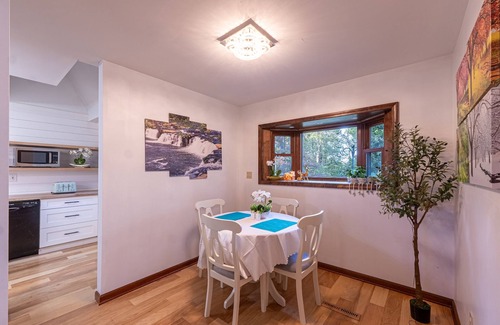 The house has 5 bedrooms (1 on the first floor, 4 on the second), with 4 baths (2 on each floor). A dining room and breakfast nook are available for indoor dining, with additional seating on the deck for outdoor dining and grilling. Our home theater room and spa room are both on the first floor, along with a fully stocked kitchen and coffee bar.