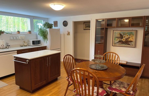 Located in beautiful Horseshoe Bay Village a short stroll to the shore, parks, beaches, restaurants, BC Ferry Terminal (Sunshine Coast, Bowen Island, Nanaimo) Gleneagles Golf Club. Quiet atmosphere framed by ocean and mountains. 20 mins to downtown Vancouver; 40 mins public transit. Self-contained, private entrance 1,000+ sqft private space, large kitchen fully equipped, spacious living & dining room. Sleeps up to four people. Free parking. Plenty of storage and laundry within the suite. Hiking at White Lake & Cypress. Skiing, snowboarding, kayaking and paddle boarding Cypress Mountain 20 minutes & Whistler (1 hour driving along the beautiful Sea to Sky Highway). Linens provided. Utilities included and WiFi.
