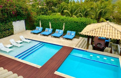 Located in Búzios, this 9-bedroom, 9.5-bathroom vacation home lets you experience it all. Fans of nature and the outdoors will love being 1 minutes by foot from Ferradura Beach and 14 minutes from Ponta da Lagoinha. Make short work of the 7-minute drive to Geriba Beach or the 3-minute drive to Rua das Pedras.