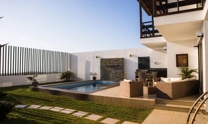 Boasting sea views, Hospedaje Casa de Playa frente al Mar offers accommodation with a balcony, around 200 metres from Pimentel Beach. This holiday home features a private pool, a garden and free private parking. The holiday home has a terrace, 5 bedrooms, 5 bathrooms, a well-equipped kitchen, a flat-screen TV with cable channels, and a hot tub. Las Rocas Beach is 2.2 km from Hospedaje Casa de Playa frente al Mar, while Estadio Elias Aguirre is 13 km from the property. The nearest airport is Capitan FAP Jose A Quinones Gonzales International Airport, 15 km from the accommodation.