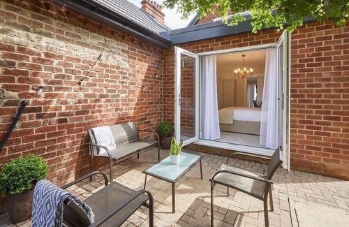 The apartment boasts an array of amenities designed to ensure comfort and convenience during your stay. The open-plan living area is bathed in natural light, featuring high-end fixtures, plush furnishings, and a state-of-the-art kitchen equipped with everything from a ceramic hob to a coffee machine. The beautifully styled bedrooms offer opulent sleeping arrangements, with a stunning king bed in the master suite and chic decor throughout. Additionally, you can unwind outdoors on the inviting patio, perfect for intimate gatherings or pre-wedding brunches while soaking up the peaceful surroundings.