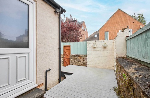 Open the patio door and you’ll find a decked area with outdoor seating so you can relax outside during your stay.