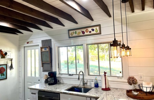 Completely renovated 50’s cottage that gives you character & charm coupled with modern amenities to include granite counters & stainless appliances. New shaker style cabinets, a breakfast bar and character enhancing ceiling beams. From the welcoming front porch, the living room greets you with a large chandelier anchored to the vaulted ceiling. The master has a queen size bed. The guest bedroom has custom built bunk beds; sleeps 4. The cottage is only 5 minutes to downtown historic Clayton. Outside there is a firepit and a covered area under the carport for grilling on the propane gas BBQ grill. There is ample parking in driveway and across the street in front of the house.