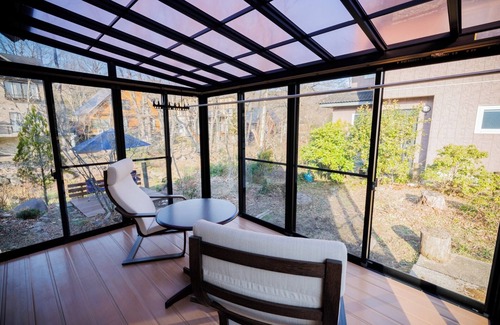 / The hot spring cottage Stella is located in an area where you can hear the soothing sound of a stream How about having tea time on the deck beside the babbling breeze while listening to the sound of the water There is also a sunroom where you can relax and enjoy the stars in the clear night sky on chilly days