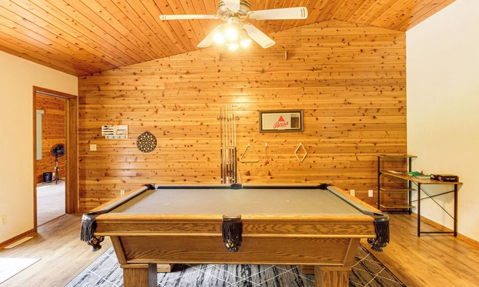 Hot Tub & 2 Recreation Rooms: Spacious Onamia Home is located in Onamia. Hot Tub & 2 Recreation Rooms: Spacious Onamia Home provides accommodation, featuring Sports/Activities, Entertainment, Kitchen, among other amenities. This House features Sports/Activities, Entertainment, Kitchen, to make your stay a comfortable one.