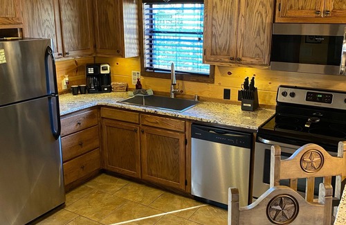 Beautiful fully furnished Luxury Cabin on 3 plus acres, located 25-30 minutes north of Beavers Bend on the Upper Mountain Fork River in the Kiamichi Mountains. Come relax in the hot tub and enjoy the peace and quite this fully furnished cabin offers. Deer Run is a 3 bedroom 2 bath cabin with beautiful hand made aspen log beds. Bedroom # 1 offers a King Log bed, bedroom 2 & 3 both have beautiful Queen Log beds. Large living room with Satellite (Direct TV) and Blue Ray DVD Player with 100's of movies and surround sound. Upgraded Super Fast Fiber Optic Wifi (added January 2025) for those who must work remotely from the cabin or for streaming needs. Smart TV's for streaming your favorite apps in each bedroom. Utility room has full size Washer and Dryer. The Large back deck with River view is a great place to sit and listen to the river flow and watch the stars & wildlife. Smoker/Grill for those who wish to cook outdoors. Bring your marsh mellows and enjoy the fire pit under the stars. Fire wood is provided. Large front porch over looks a beautifully manicured property to relax and watch wildlife. Deer, foxes, squirrels, hummingbirds and a occasional black bear are home to the area. Private access to the Mountain fork river is just minutes away where you can enjoy fishing, swimming and kayaking. Kayaks, paddles and life vest are available during season, and are subject to unavailability during inclement weather, high or rising river levels and cold temperatures.