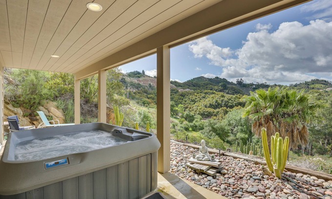 Clear your mind with a once-in-a-lifetime retreat at this Fallbrook vacation rental. With a serene mountainside setting and location surrounded by world-renowned wineries and scenic hiking spots, this 4-bedroom, 3-bath house ensures a memorable SoCal stay. Visit Old Town Temecula or try your luck at nearby casinos! Then, return home to take in the beautiful canyon views from the comfort of the private hot tub.