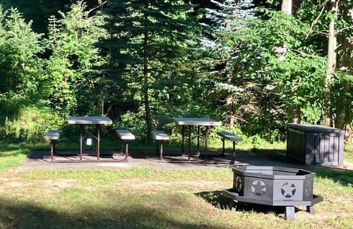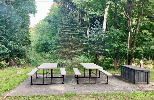 New Nordic 6 person Hot Tub with northern light package in quiet back yard. Enjoy the hot tub with a camo fire in the back ground. Experience Port Austin like a local in this charming 2-bedroom cottage. Nestled in a serene setting, this enchanting retreat features 1 queen bed, 1 bunk bed full on the bottom, twin on top. With heating, AC, and WiFi, guests can relax in comfort. The bathroom offers a refreshing shower. You're sure to make fantastic memories with a stay at our place. Just a short walk toa spacious beach with minimal traffic, the beach is not open to the public. Back yard is shared between two cottages.