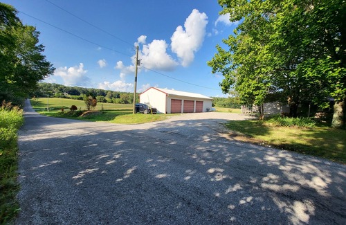 We are pet friendly and do not charge extra for your pets. Although this home sits on 60 private acres, the owners do live on the back side of this property and ask that you respect their privacy. Guests are welcome to walk around the front of this property but are asked to not go beyond the pond. You are welcome to pet the horses if they come up to the fence but guests may not enter the pasture with the horses at any time. This property does boarder thousands of acres of Shawnee National Forest and is only a 1/4 mile off the River to River trail.