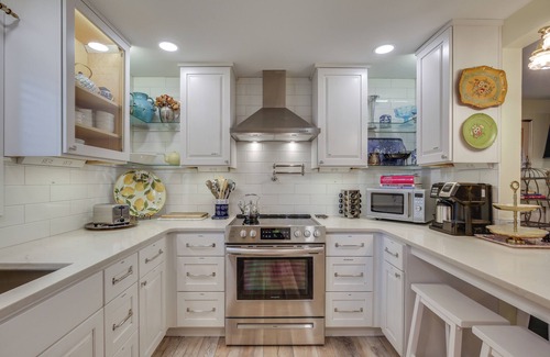 A fireplace and air conditioning are featured at this 2-bedroom, 1-bathroom rental. Prepare a home-cooked meal in the kitchen, complete with an oven, a stovetop, and a dishwasher, as well as a coffee maker, an ice maker, and a microwave.