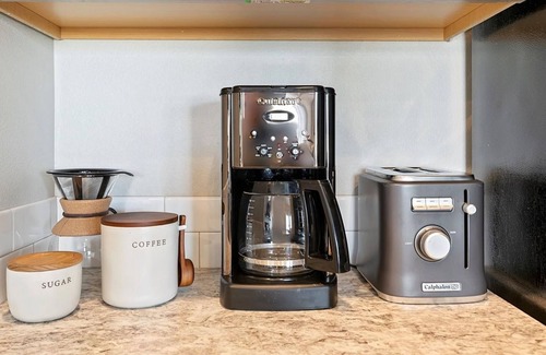 • Coffee! We have included a drip coffee maker with filters, a Keurig coffee maker, and a pour-over with coffee, cream and sugar provided.