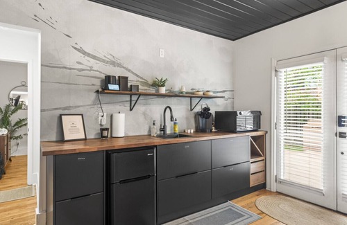 Explore ATL from the The Bubbley Suite apartment, our centrally-located remodeled 1920s cottage with all the comforts of home. Just 1 block from MARTA, 15min drive to airport, and 10min walk to Little Five Points & Inman Park restaurants & bars. This private studio was added to our home in a 2021 remodel including the spacious back deck w/ outdoor dining and HOT TUB. Wet bar with sink, microwave/oven, coffee, and mini fridge+freezer, and a spa shower. Pup friendly (just let us know)!